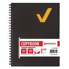Тетрадь-блокнот 80 л., А5, 160х207 мм, BRAUBERG, клетка, гребень, обложка пластиковая, 1 разделитель, "Tag", 401800
