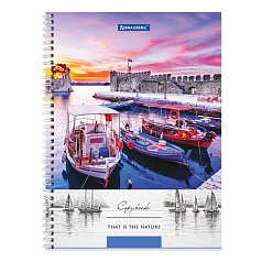 Тетрадь А4, 80 л., BRAUBERG, гребень, клетка, обложка твердая, "Nature", 404054