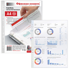 Перфорированные папки-файлы ОФИСНАЯ ПЛАНЕТА идеально подходят для решения повседневных задач – облегчения классификации, упорядочивания офисной документации, обеспечения сохранности бумажных носителей, стойкости к истиранию, намоканию, загрязнению.