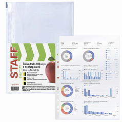 Перфорированные папки-файлы STAFF обеспечивают сохранность бумажных носителей, защищают их от истирания, увлажнения, загрязнения, при этом обладают требуемыми параметрами прочности и прозрачности, позволяют систематизировать все важные документы.