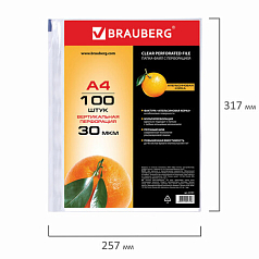 Перфорированные папки-файлы BRAUBERG предназначены для хранения, транспортировки и защиты документов. Боковая универсальная перфорация подходит для разных типов скоросшивателей.
