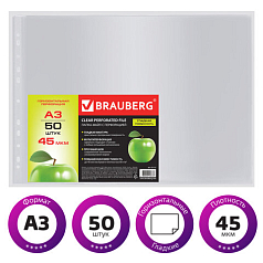 Папки-файлы БОЛЬШОГО ФОРМАТА (297х420 мм), А3, ГОРИЗОНТАЛЬНЫЕ, КОМПЛЕКТ 50 шт., 45 мкм, BRAUBERG, 221715