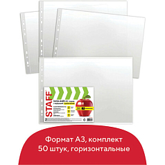 Папки-файлы БОЛЬШОГО ФОРМАТА (297х420 мм) А3, ГОРИЗОНТАЛЬНЫЕ, КОМПЛЕКТ 50 шт., 35 мкм, STAFF "Manager", 225770