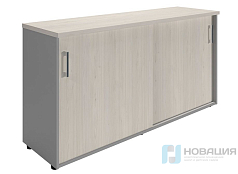 Шкаф состоит из металлических стоек, полок и закрытой секции с двумя дверьми, в которй есть полка, регулируемая по высоте с шагом 32 мм. Для плавного предусмотрены мебельные петли с доводчиком. Каркас закреплен на стойках из металлических опор с иксобразными элементами.