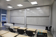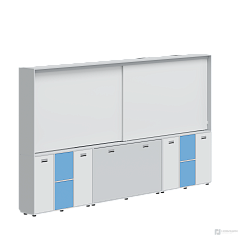Включает 4-е поверхности для письма мелом или маркерами, две из которых двигаются по рельсам, скрывая центральную интерактивную доску. Боковые доски жестко закреплены на стенах, а верхние мобильны и легко сдвигаются.