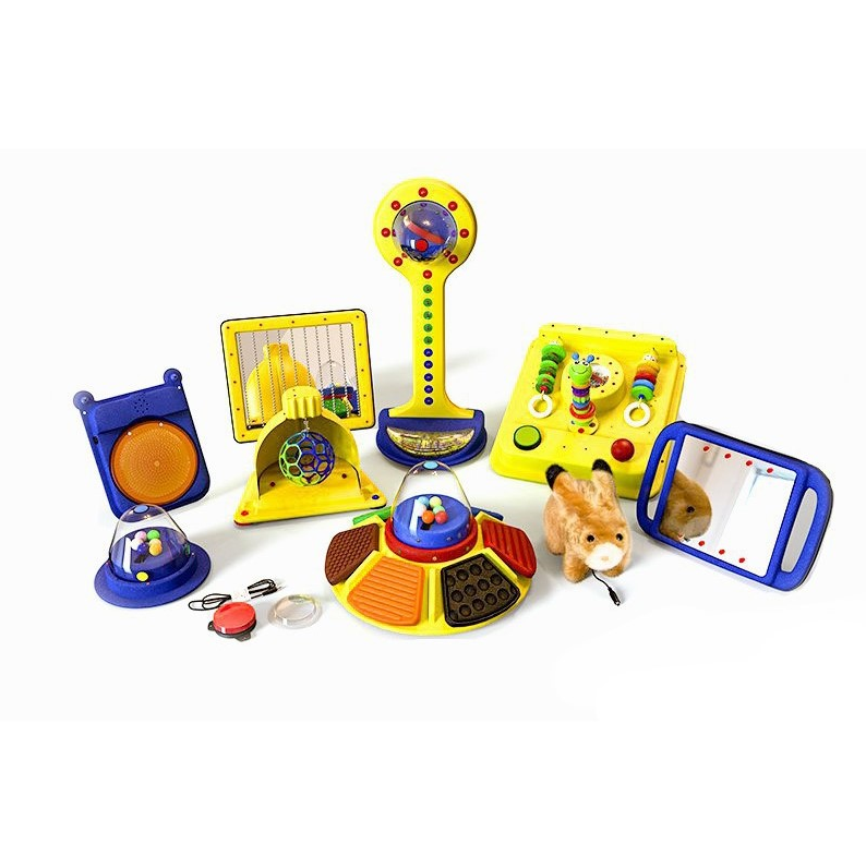 Наборы представлены красочными предметами с визуальными или звуковыми эффектами, вибрацией, функциями обучения счету и основам грамотности.