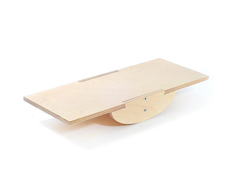 Тренажер для развития вестибулярного аппарата представлен в виде доски на подставке. Платформа качается. Чтобы устоять, ребенок распределяет вес тела и приводит поверхность в горизонтальное положение.