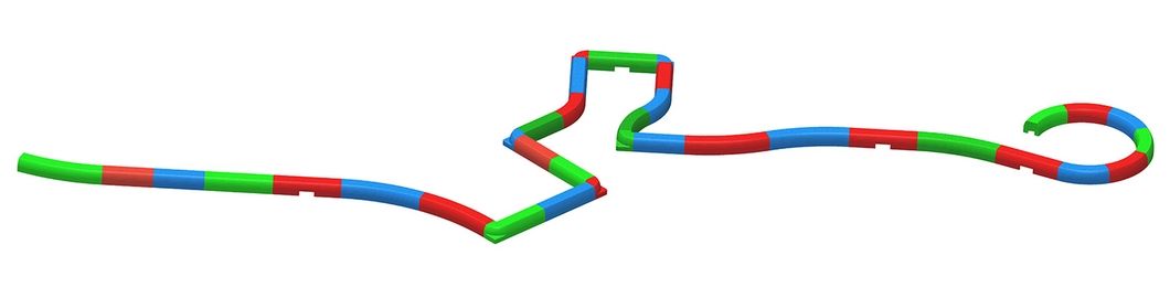 - прямой элемент, 27 см (196 г) — в 3-х цветах, всего 8 элементов (2 элемента одного цвета, по 3 элемента других цветов),