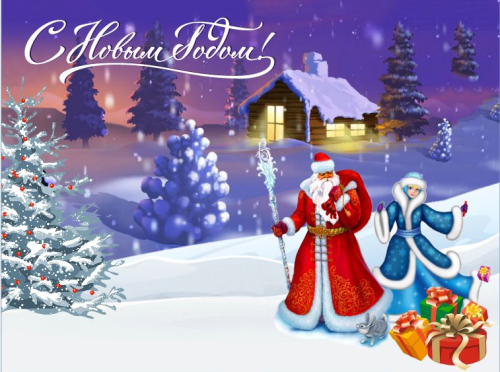 На ярком баннере к зимним праздникам изображен сказочный сюжет. Сверху надпись "С Новым годом!". Виниловое полотно противостоит действию ветра и осадков, не выцветает.