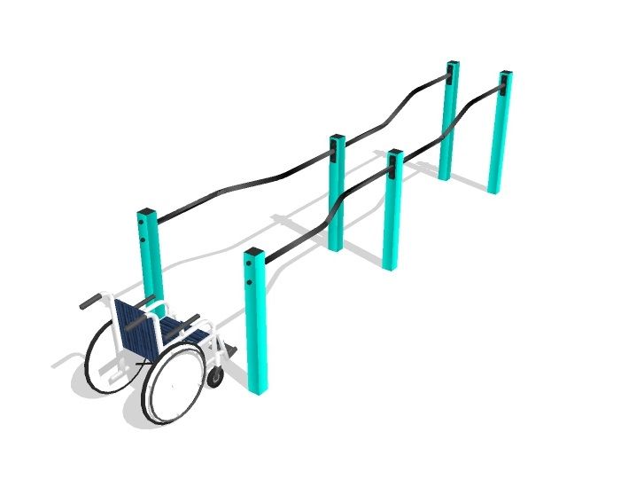 Брусья предназначены для тренировки жима. Плавные изгибы позволяют выполнять упражнения людям с ограниченными возможностями здоровья. Модель оснащена расширением для подъезда на инвалидном кресле.