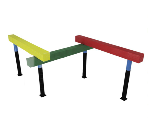 Ножки изделия выполнены из металлической трубы, покрытой полимерно-порошковой краской, устойчивой к воздействию неблагоприятных погодных условий и ультрафиолетовых лучей. Бревно изготовлено из бруса хвойных пород, покрытого специальной пропиткой, это сокращает риск травмирования детей, а так же воздействия влаги на древесное полотно.