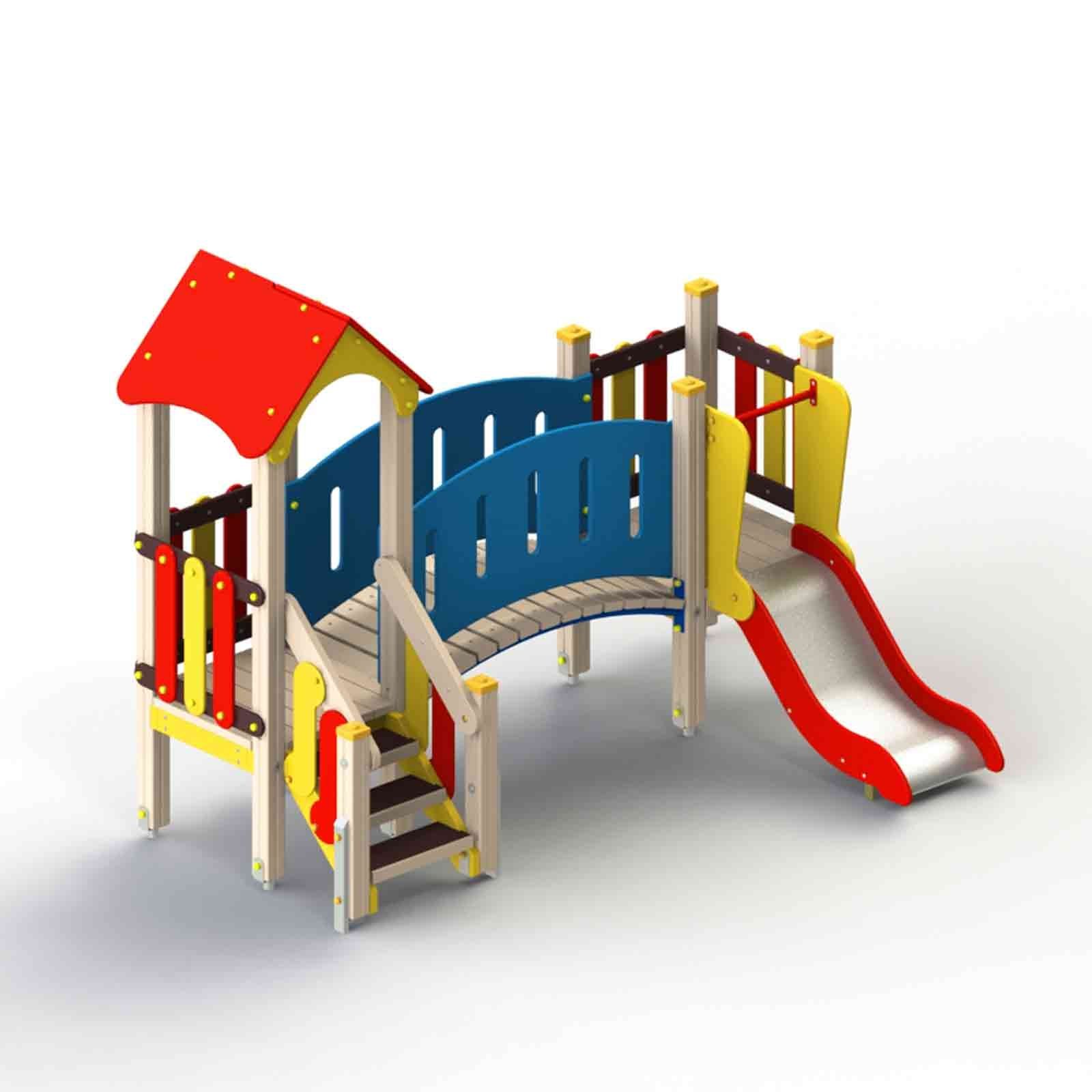 - горка: скат (сталь, 1.5 мм), фанерные бортики (h 100 мм), защитная секция, перекладина (d 33 мм),