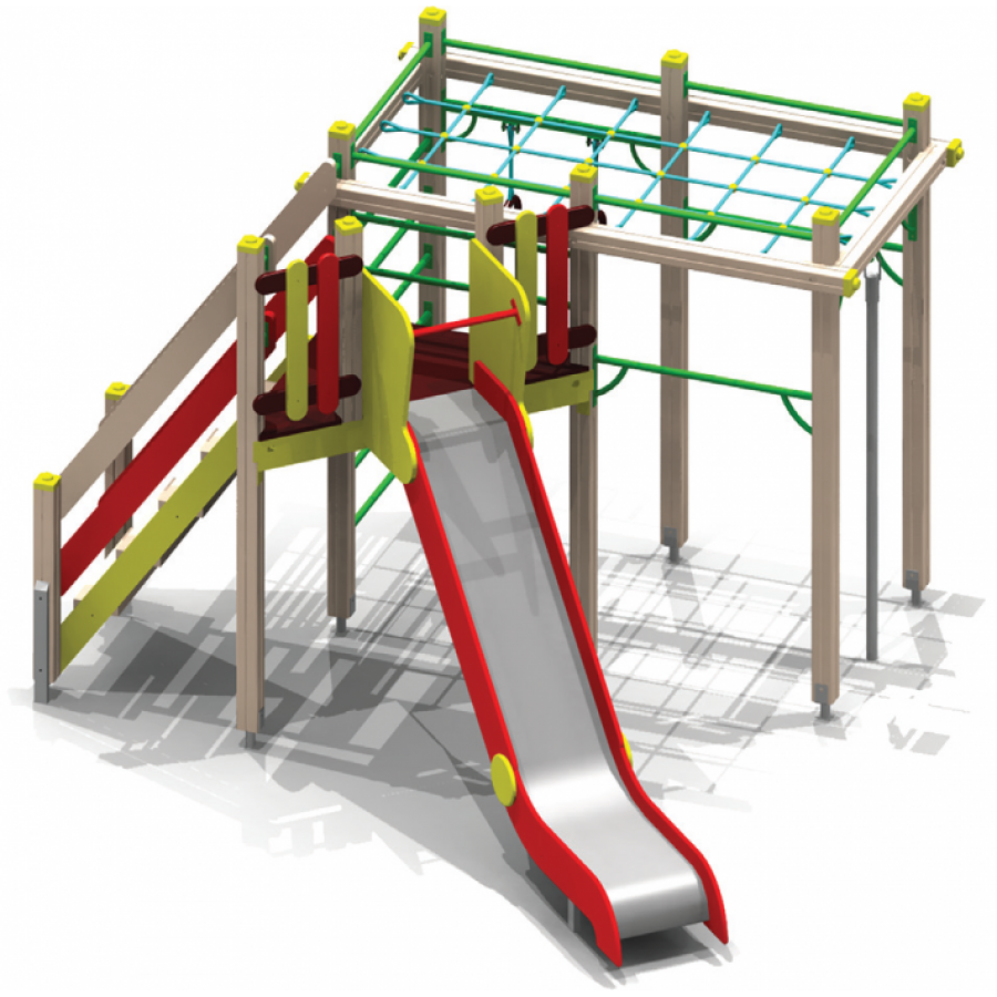 - горка со скатом из нержавеющего стального листа, бортиками из фанеры, защитной перекладиной,