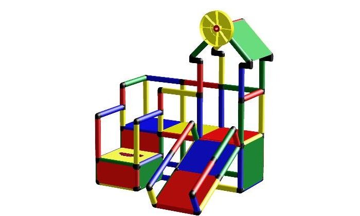 Набор используется под наблюдением взрослых. Из колес, руля, муфт и планок сооружаются конструкции. Доступно 16 вариантов строения: по 2 функционирующие модели одновременно. Можно собрать парту, грузовик, лабиринты, домики, вышки, горки.