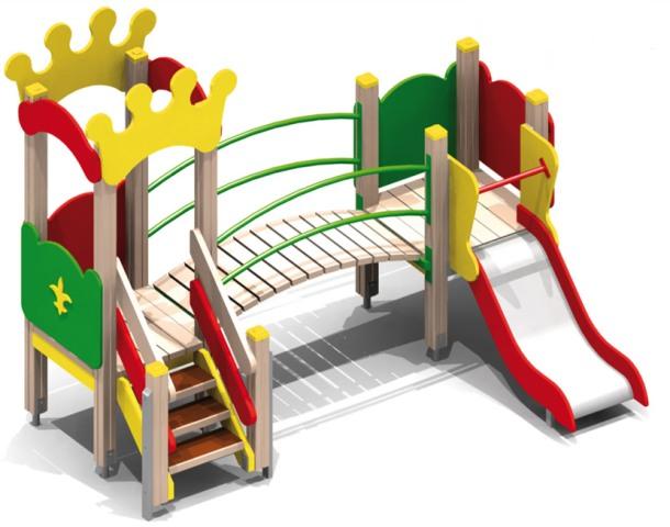 - горка: скат (нержавеющая сталь, 1.5 мм), фанерные бортики (h 100 мм), защитная секция, перекладина (d 33 мм),