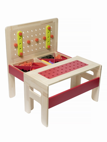 Игровой стол-верстак выполнен из экологически чистого, тщательно отшлифованного и частично окрашенного древесного полотна.