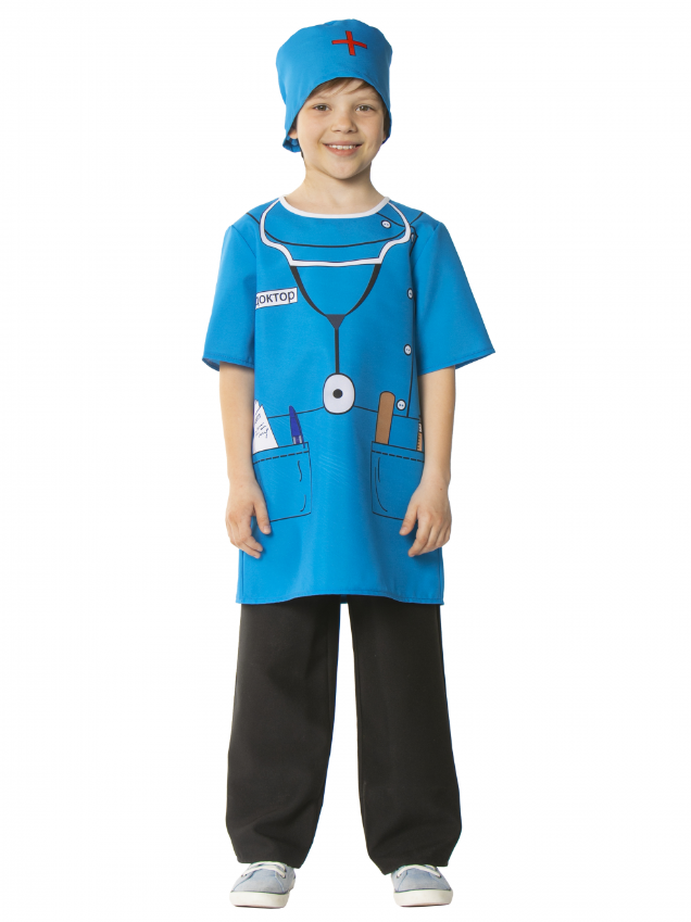 Универсальный костюм Доктора подойдет как мальчикам, так и девочкам. Может использоваться в ДОУ и начальной школе при проведении новогодних утренников, профориентационных мероприятий, и театральных постановок.