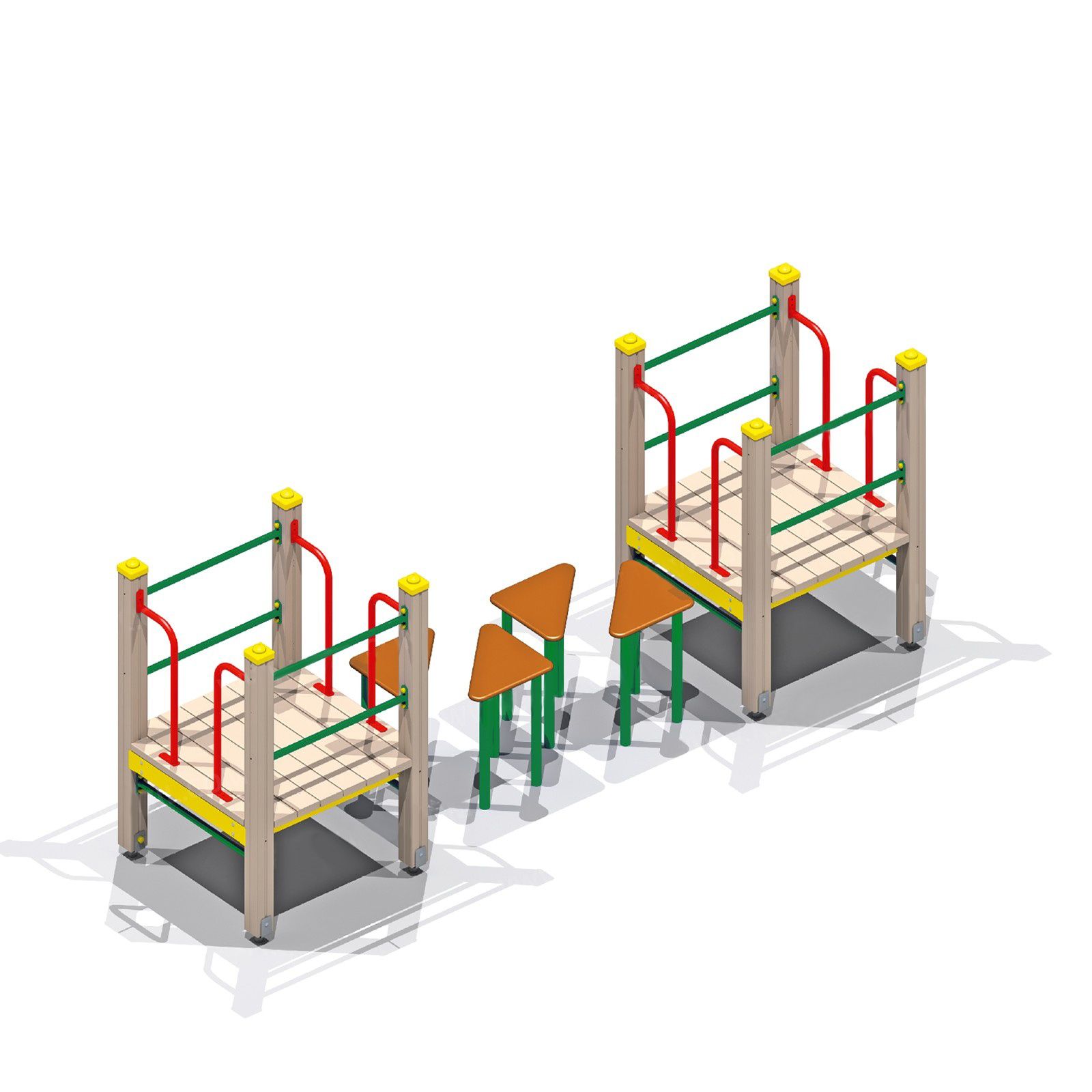 D перил 33 мм. Каждая башня опирается на 4 столба, сечением 100х100 мм. Пол комплекса находится на высоте 650 мм над землей. Столбы и стойки закрепляются бетонированием.