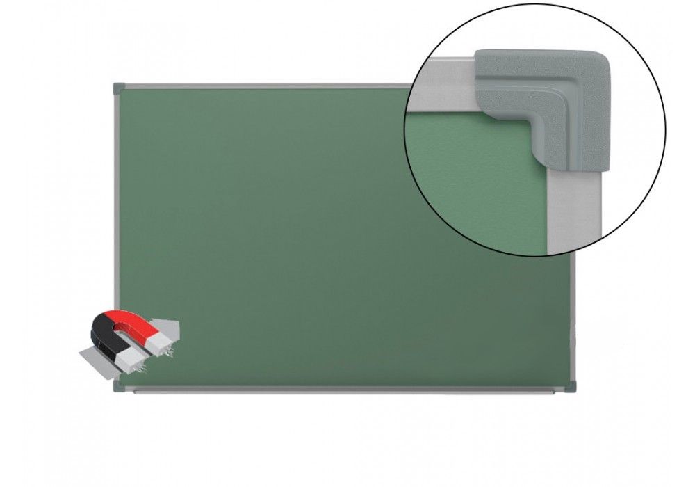 Стальной лист с полимерным покрытием закрепляется в металлическом профиле. Рабочая область для записей мелом не бликует в солнечный день. Классная доска удерживает магниты, поэтому на ней могут вывешиваться наглядные пособия.