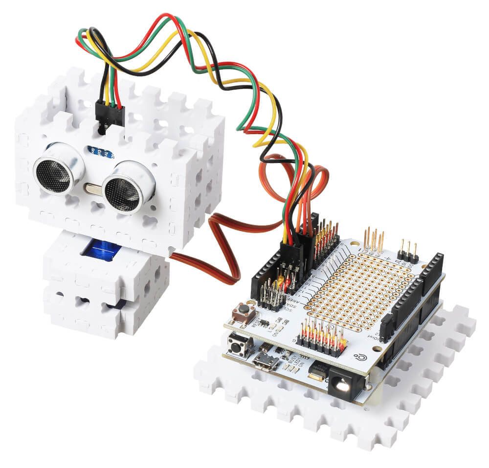 - Доступно 25 вариантов конечного результата: лампа светодиодная, пантограф (устройство для перечерчивания планов и карт), умный шлагбаум, театральный свет, тревожная кнопка и др. Корпус гаджета собирается из комплектующих.