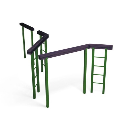 Спортивное оборудование бетонируется на глубину 700 мм или без заглубления в грунт фиксируется на специальном уличном покрытии. Установка предназначена для тренировки равновесия, силы рук, ног и пресса.