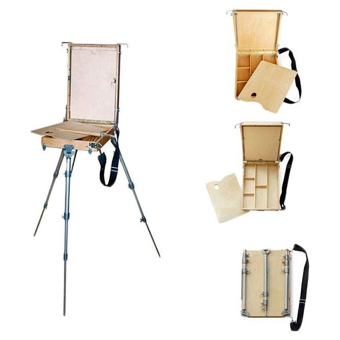 Классический этюдник небольшого размера удобен в мастерской и на пленере. Конструкция выполнена максимально удобно для работы. Алюминиевые ножки регулируются по высоте.