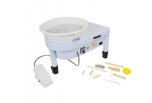 Высота стола регулируется от 28 до 38 сантиметров, длина провода педали составляет 900 мм. Круг способен обрабатывать керамическую массу весом до 4 килограммов.