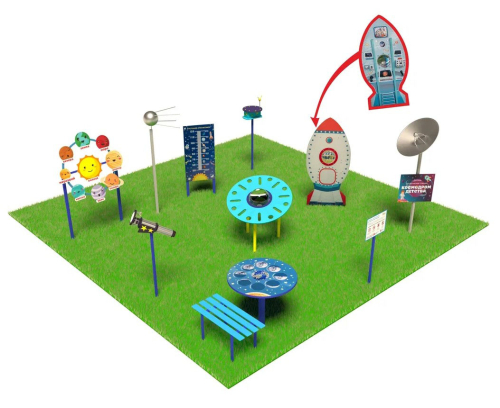 Макеты помогают узнать об устройстве Вселенной и профессии космонавта. Пособие содержит рекомендации по работе с приборами. Площадка подготовлена к смене погодных условий и частой эксплуатации. Поверхности гипоаллергенны, противостоят физическим и химическим воздействиям.