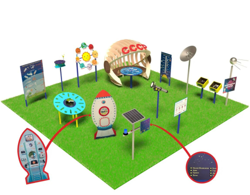 Макеты помогают узнать об устройстве Вселенной и профессии космонавта. Пособие содержит рекомендации по работе с приборами. Площадка подготовлена к смене погодных условий и частой эксплуатации. Поверхности гипоаллергенны, противостоят физическим и химическим воздействиям.