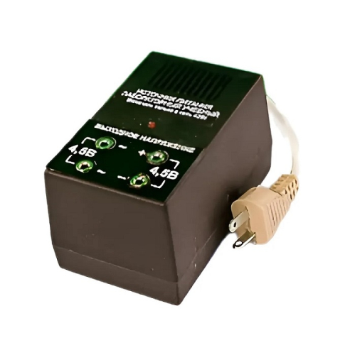 Источник подключается к оборудованию для лабораторных работ по физике. Пластмассовый корпус оснащен печатной платой, индикатором включения, гнездами для постоянного и переменного тока.