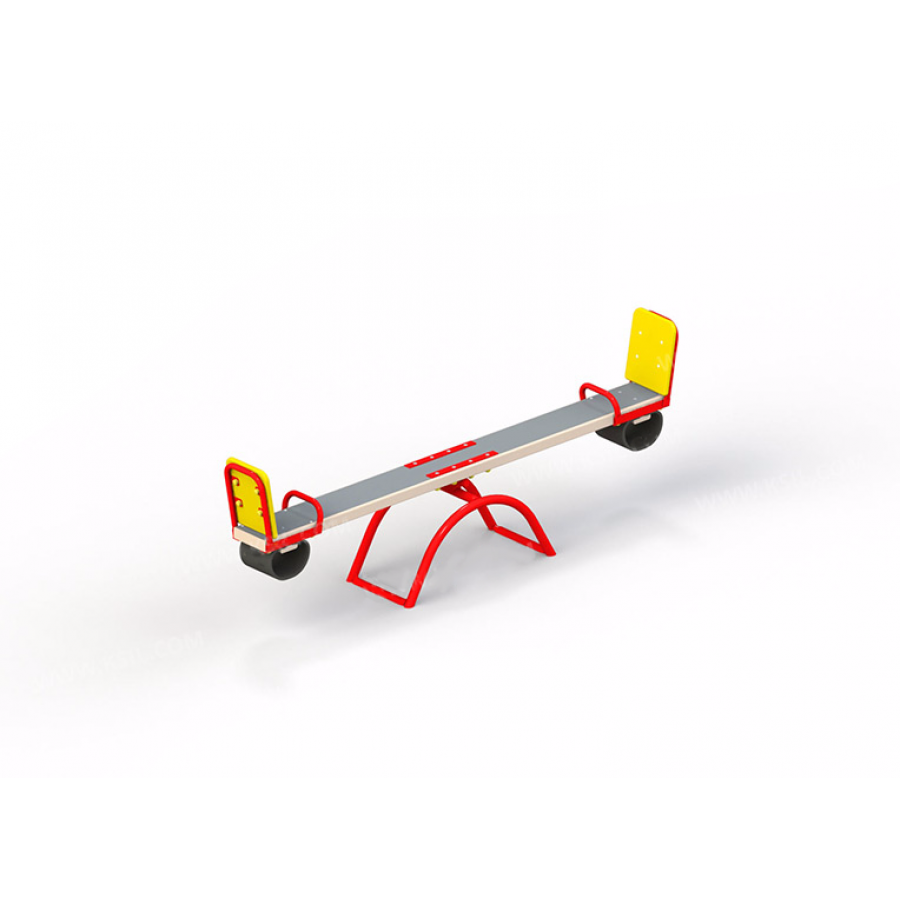 Качель-балансир для 2-х детей опирается на основание из металлических труб (d 42 мм). К доске прикрепляются 2 фанерные спинки, 2 поручня (d 26 мм). На оборотной стороне 2 цилиндра из резины для равновесия.
