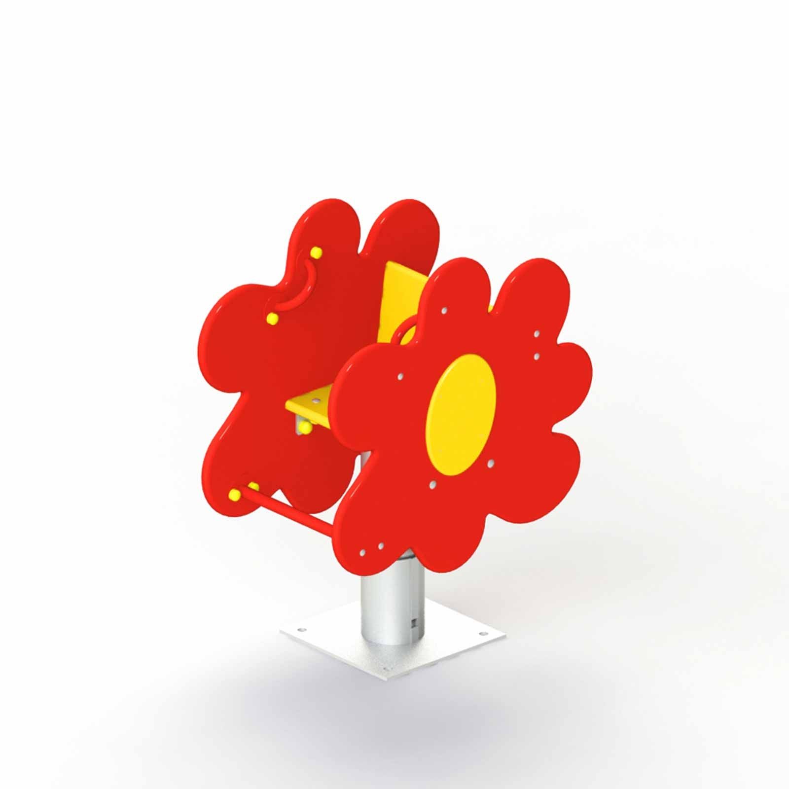 Качалка на виброустойчивой пружине(d 26 мм), оснащена боковыми панелями в виде цветка. Фанерное посадочное место дополнено спинкой. Чтобы держаться, есть 2 поручня и опора из трубы. Конструкция усилена перекладиной жесткости.