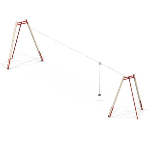Канатная дорога состоит из троса (d 10 мм), протянутого между опорами, и роликового сиденья на подвесе. Ребенок перемещается по заданной линии во время эстафет, соревнований, физкультурной разминки. Чтобы смягчить движение, с одной стороны предусмотрен отбойник-шина. Каждая из 2-х опор составлена стойками: 1 металлическая, 2 из бруса сечением 136х136 мм.