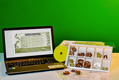 В коллекции образцы 10-ти видов – трилобит, аммонит, папоротник, коралл, брахиоподы, белемнит, брюхоногий моллюск, нуммулиты, членики морских лилий. Образцы принадлежат разным геологическим периодам, часть окаменелостей представлена муляжами. Ячейки с материалами пронумерованы. На вкладышах представлены латинские и русские названия образцов. Дополнительные сведения приведены в приложении. Пособие подходит для самостоятельного и коллективного изучения.