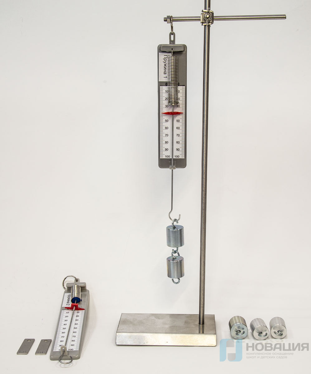 - Пружина жесткостью 50 Н/м на планшете со шкалой 100 мм;