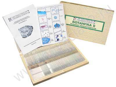 Снабжен экспликацией на русском и английском языках. При необходимости препараты окрашены, что делает их детали более контрастными. Комплект содержит методические рекомендации по проведению лабораторных работ, снабженные иллюстрациями, на которых показано, какие детали препарата можно рассмотреть, и какое увеличение рекомендуется для этого использовать.