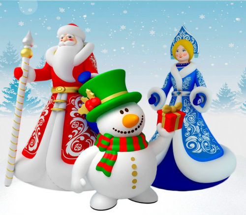 - Дед Мороз 3000 мм, Снегурочка 2600 мм, Снеговик 3000 мм,