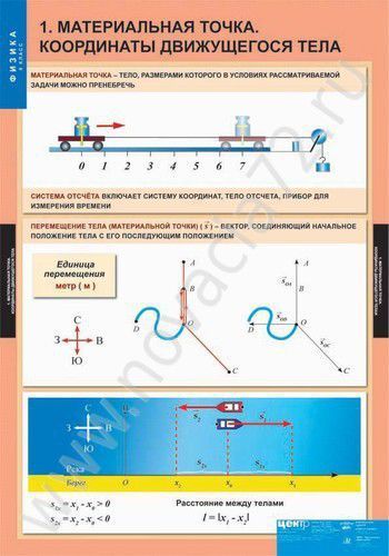 Набор цветных плакатов по физике представлен в форме альбома. Рисунки, схемы и таблицы помогают ученикам 9 класса запомнить теорию.