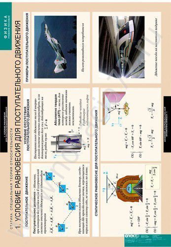В учебном пособии рассматривается специальная теория относительности. Плакаты по теме статики сопровождаются заголовками, цветными иллюстрациями.