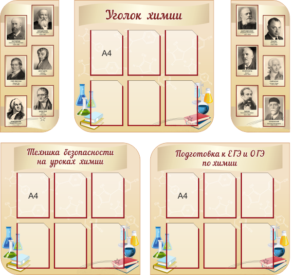 Набор из 5-ти стендов с полноцветной печатью размещается в кабинете химии.