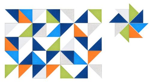 - стенд из разноцветных треугольных панелей,