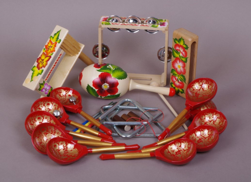 Народные музыкальные инструменты с художественной росписью предназначены для дошкольников и детей младшего школьного возраста.