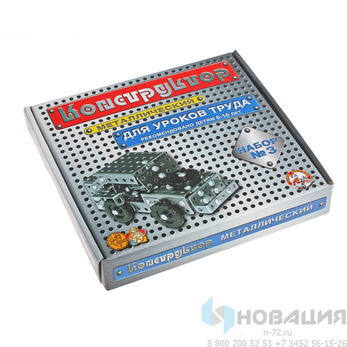 В наборе шкивы, крюки, гайки, винты, планки, пластины. Приводится схема сборки 5-ти моделей (2 машины, коляска, самолет, кран).