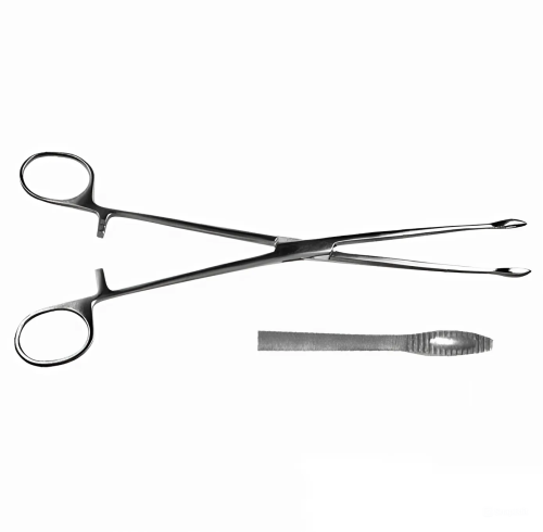 Прямой корнцанг для ввода дренажа в узкие каналы, погружения тампонов в глубокие раны используется при лечении детей.