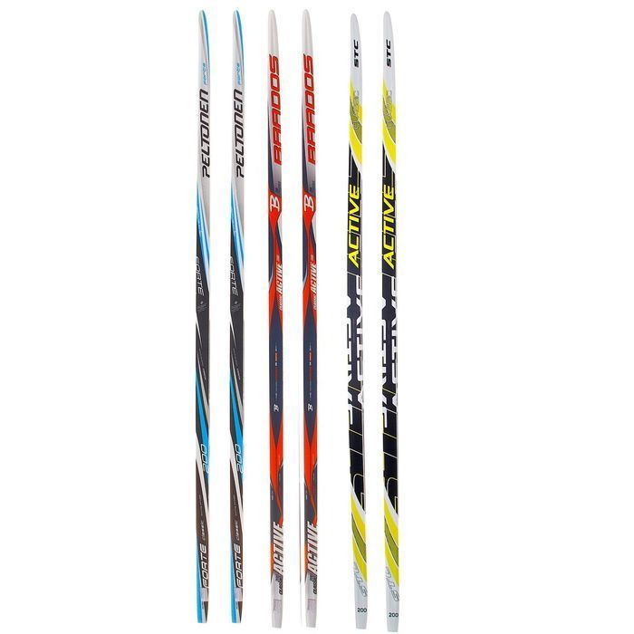 Пара лыж для освоения хода используется на уроках физкультуры. Лыжи шириной 44 мм поставляются без креплений и палок. Высота в горизонтальном положении составляет 40 мм.