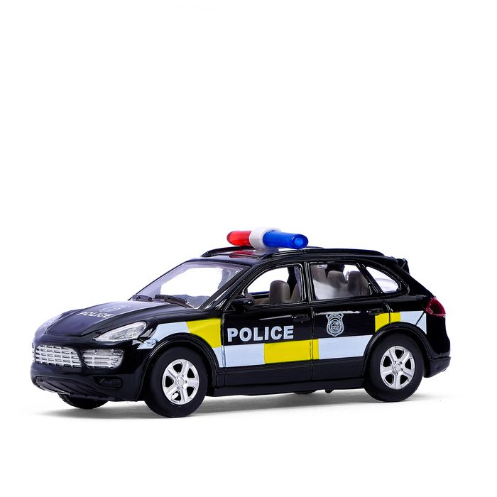 Инерционная модель полицейского внедорожника выглядит реалистично (масштаб 1:43). Механизм приводится в движение рукой, машинка быстро развивает скорость. Во время игры воспроизводится звук двигателя. Корпус оснащен подсветкой, двери не открываются.