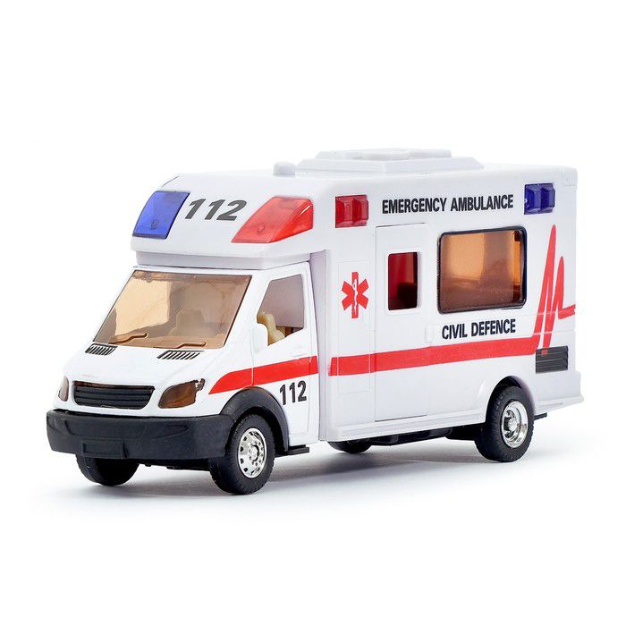 Светящаяся машинка с инерционным механизмом выполнена в масштабе 1:48. Подвижная модель оформлена как транспорт службы скорой помощи; сопровождается звуковыми эффектами. Машинка задействуется в сюжетах игр, работает от 3-х батареек (в комплекте).