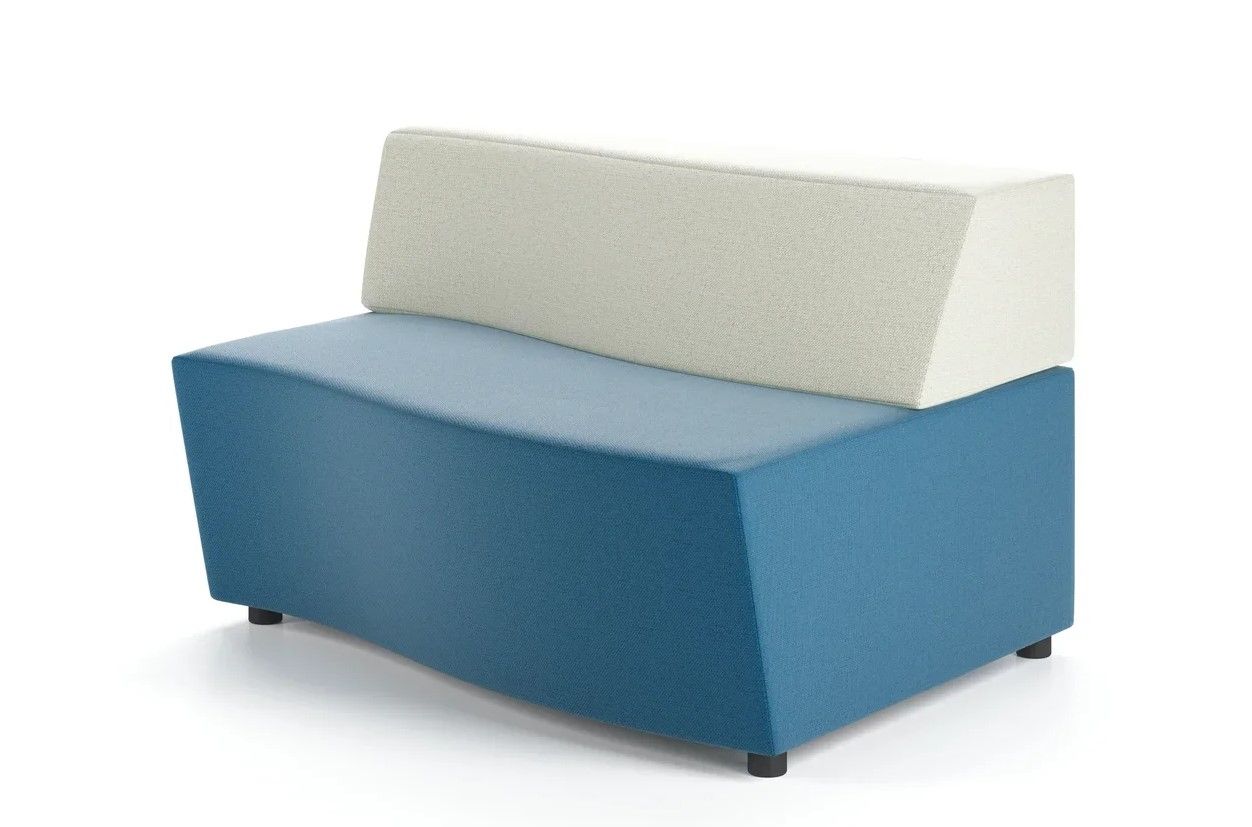 Диван состоит из верхнего и нижнего элементов, грани которых представлены в форме трапеций и прямоугольников. Передний край сиденья волнообразный. Каркас опирается на 4 ножки. Посадочные места для 1-2 человек покрыты экокожей. Стойкость к истиранию: не менее 50000 циклов. Изделие сочетается с другими моделями линейки, возможно составление произвольных композиций без острых углов.