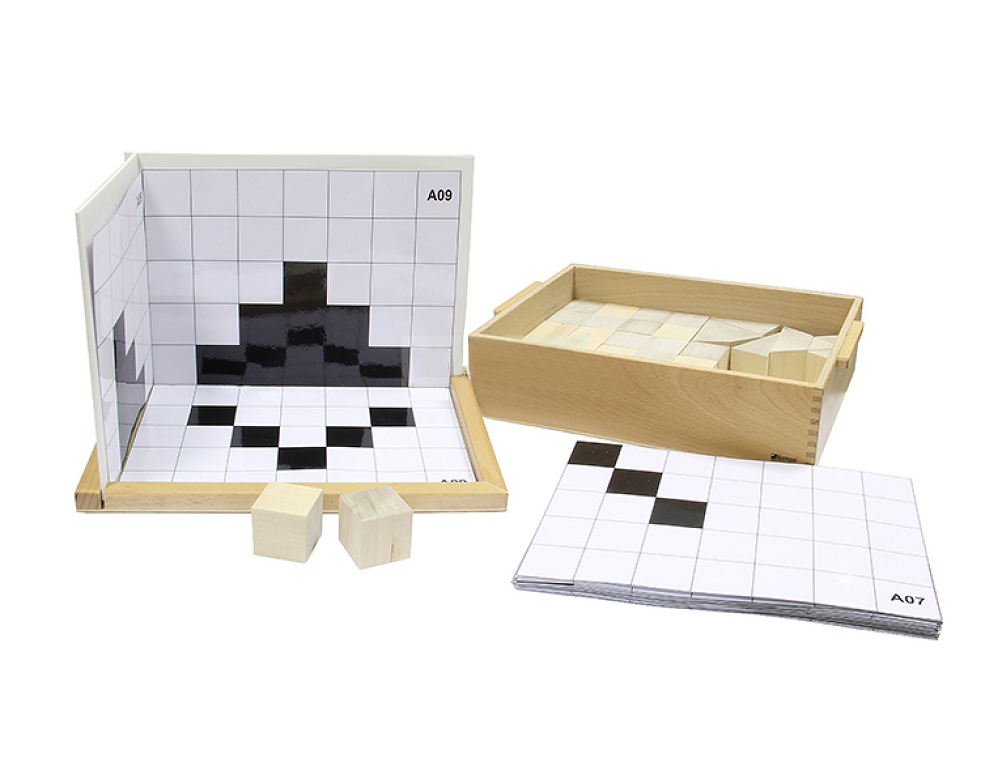 Набор для занятий по методу Монтессори знакомит ребенка с геометрией. Элементы разной формы, изображения проекций, зеркала и специальные задания помогут разобраться в трехмерном пространстве. Листы складываются и служат фоном для фигур. На занятиях развивается пространственное мышление, происходит подготовка к черчению.