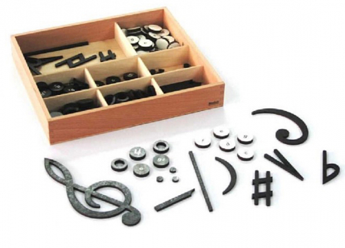 - 48 дисков: 40 белых (названия нот), 8 черных (на одной стороне цифры, на другой ноты).